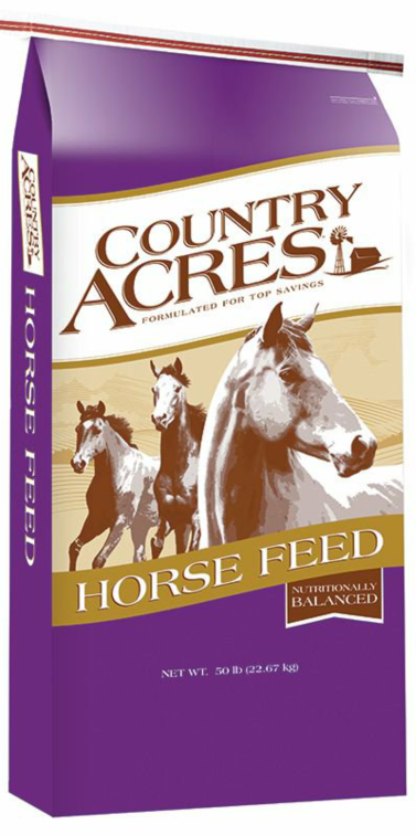 Feed with hay and/or pasture to make a complete ration for horses. Feed mature horses at the rate of ½ 1 pound per 100 pounds of body weight, along with 1 to 1 ½ pounds of hay or equivalent pasture per 100 pounds of body weight daily.