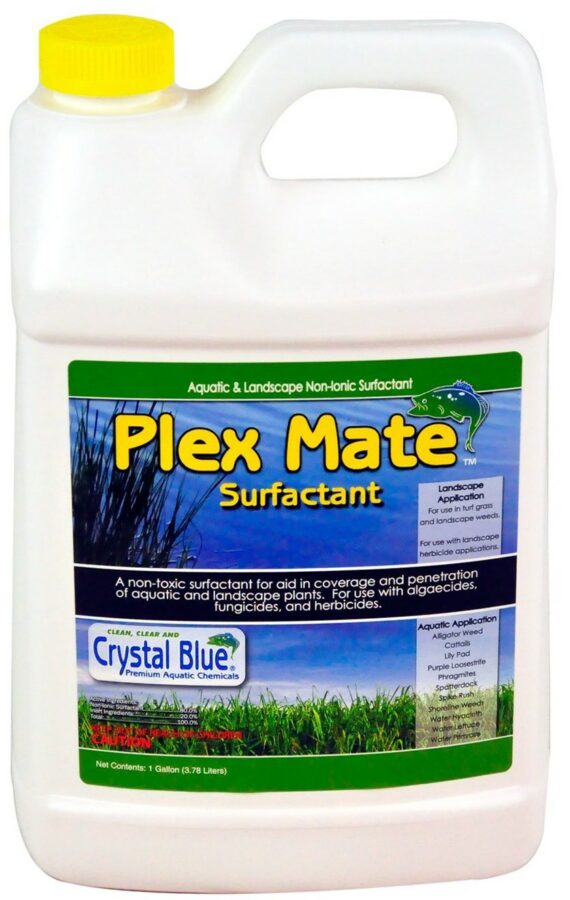 Surfactants help stick your chemical herbicides and algaecides to the plant. Plex Mate will also break down the waxy coating on aquatic weeds to allow more effective penetration by algaecides and herbicides. Plex Mate surfactant is used when treating floating and emerged weeds, and surface algae.