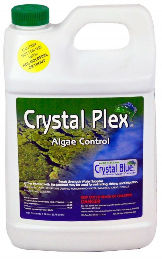 Crystal Plex is a liquid copper sulfate solution designed to kill and control algae and some aquatic plants including Hydrilla. Pond algae treatments should be done on actively growing algae and when water temperatures are at least 50F.