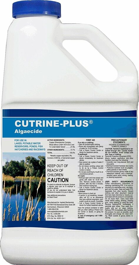 Cutrine Plus is a concentrated chelated copper algaecide. Chelated copper offers a long-lasting control of a variety of algae species. Less toxic to fish species than traditional copper sulfate. Contains no corrosive sulfates.