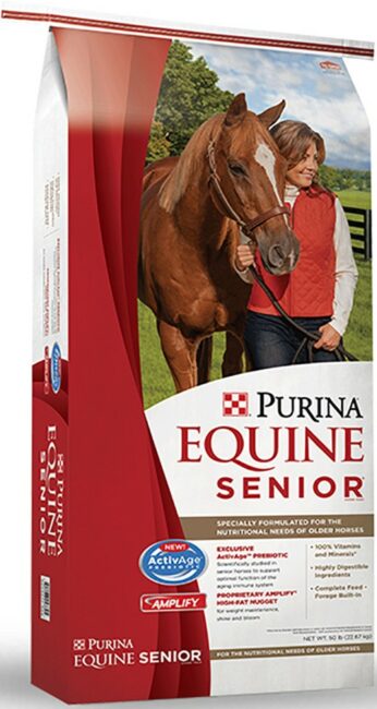 Purina’s Ph.D. Equine Nutritionists and Veterinarians continually research new ways to address the specific needs of aging horses, helping your senior horse live a long, healthy life. Purina® Equine Senior® horse feed has been scientifically studied at the Purina Animal Nutrition Center for over 20 years. With this formulation, our nutritionists have combined all the benefits of the trusted original Equine Senior® horse feed together with discoveries from the most cutting-edge equine science.