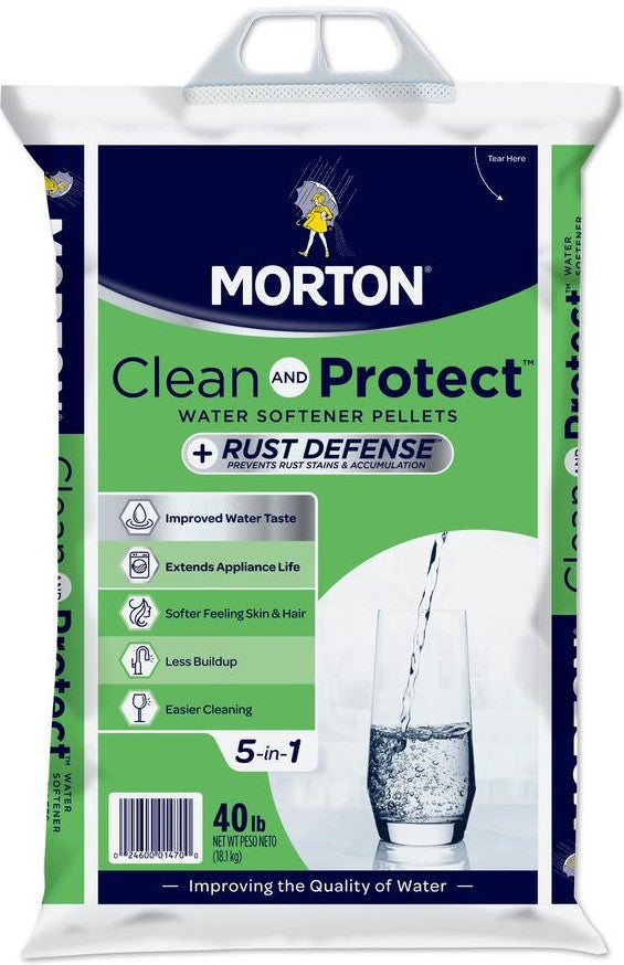 Morton Clean and Protect Plus Rust Defense water softener salt is specifically designed for use in areas with high-iron water. It removes 15 times more iron than plain salt, leaving you with better tasting water and fewer rust stains on bathroom fixtures, laundry and appliances
