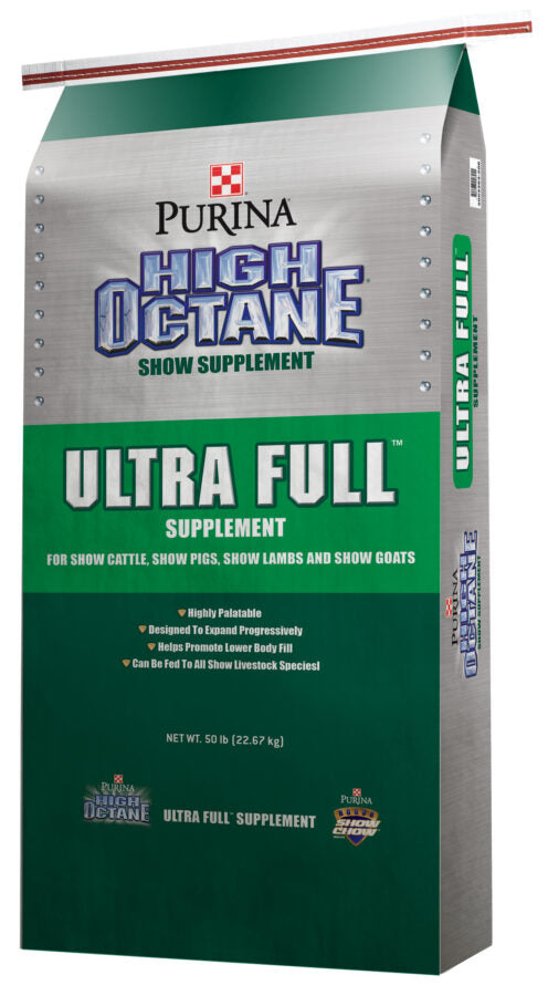 Adds yet another supplement to our full line of show supplements to help you achieve the desired results you need with your show project. High Octane Ultra Full supplement is designed to help support fill in the lower body and flank areas through controlled, progressive expansion. Ultra Full supplement can be fed in combination and compliments our High Octane Depth Charge supplement. It's proprietary ingredient blend enhances palatability to help stimulate feed intake and can be fed to all show livestock species.