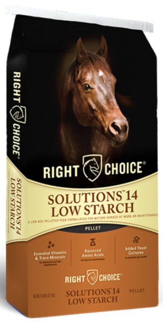 A low NSC pelleted feed formulated for mature horses at work or maintenance.