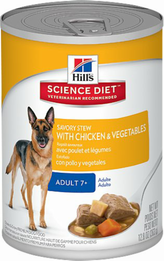 Hill's Science Diet Mature Adult Savory Stew with Chicken & Vegetables is a delicious way to provide precisely balanced nutrition that enhances the overall health and well-being of your older dog. It is made with real chicken, brown rice and a medley of delectable vegetables including peas and carrots, all smothered in a delicious gravy.
