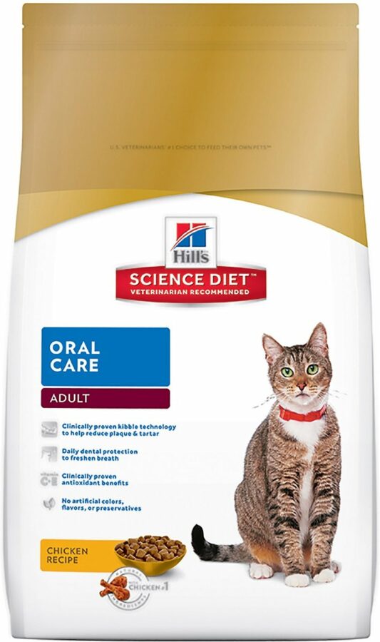 Hill's® Science Diet® Adult Oral Care dry cat food provides precisely balanced nutrition for dental and complete health.