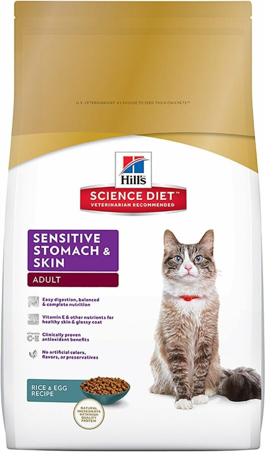 Hill's® Science Diet® Adult Sensitive Stomach & Skin dry cat food provides precisely balanced nutrition for sensitive digestive systems and to improve skin and coat health.