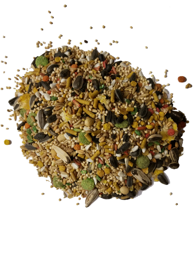 - Tasty blend of grains, pellets, seeds, and vegetables