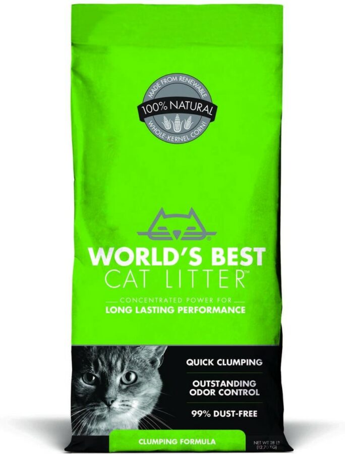 Say goodbye to mediocre clay pellets and hello to the World's Best Cat Litter. This powerful litter instantaneously traps odors left behind by your feline friend, and forms tight, easy-to-scoop clumps on contact. That means you can spare your home from that foul ammonia smell and cleanup becomes a breeze! A natural, compressed corn formula is completely free of silica dust, so you and your family can breathe easy. This 99% dust-free litter won't disturb your pouring with a dusty cloud! Plus, this formula is environmentally friendly—totally flushable, and safe for both septic and sewer systems. Feel good about what's in your litter box with this pet, people and planet friendly litter.